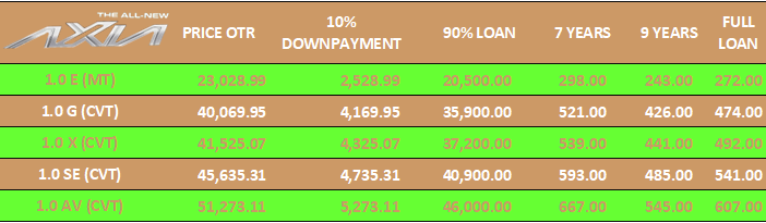 Menawarkan empat varian untuk model Axia baru kali ini iaitu G, X, SE dan AV.