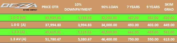 PERODUA BEZZA Perodua Bezza 2020 dilancarkan pada Januari 2020.Perubahan bagi Perodua Bezza facelift 2020 ini adalah lampu depan LED untuk semua varian dan rekabentuk lebih nipis dan tajam berbanding model sebelum ini.Varian AV dilengkapi dengan ASA 2.0, eco idle dan hill start asisst (HSA) Klik Butang Di Bawah Untuk Brochure